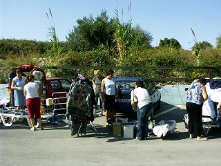Man kann dort das eine oder andere Schnaeppchen machen, sowie selbst verkaufen. Die Standgebuehr beträgt 5 Euro pro Auto. Es werden dort auch warme und kalte Getränke, sowie Souflakis zu wirklich zivilen Preisen angeboten. Für mich war es heute ein sehr schöner Tag, es hat Spass gemacht und ich habe einige Leute getroffen, die man während der Saison nur selten antrifft. |
